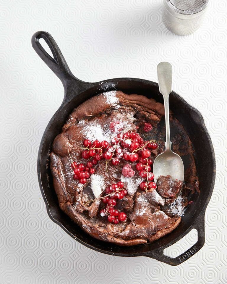 ΥλικάΜερίδες: 2 4 μεσαία αυγά 45 γρ. αλεύρι για όλες τις χρήσεις (περίπου 4 κουτ. σούπας) 15 γρ. κακάο (2 κουτ. σούπας) 120 ml φρέσκο γάλα πλήρες 30 γρ. ζάχαρη (2 1⁄2 κουτ. σούπας) 50 γρ. βούτυρο αγελάδας ξύσμα από μισό πορτοκάλι 1/2 κουτ. γλυκού εκχύλισμα βανίλιας (προαιρετικά)Για το σερβίρισμα φρούτα εποχής άχνη ζάχαρηΔιαδικασίαΓια να ετοιμάσουμε το dutch baby σοκολάτας προθερμαίνουμε τον φούρνο στους 200°C, στον αέρα.Σε ένα μεγάλο μπολ βάζουμε όλα τα υλικά εκτός από το βούτυρο.Ανακατεύουμε καλά με ένα...