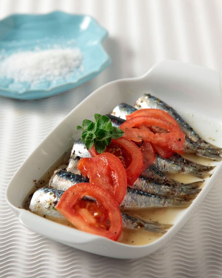 Κυριακάτικο εορταστικό τραπέζι : Σαρδέλες αχνιστές με κρασί, ντομάτες και λαδορίγανη