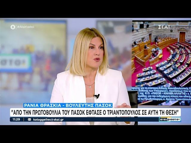 Η βουλευτής ΠΑΣΟΚ, Ράνια Θρασκιά, μιλά στους «Αταίριαστους» μεταξύ άλλων για το ενδεχόμενο πρόωρων εκλογών και το αίτημα Τριαντόπουλου για την παραπομπή του στην τακτική Δικαιοσύνη σχετικά με την υπόθεση της τραγωδίας των Τεμπών.
