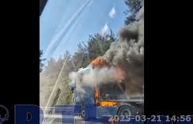 Πιο συγκεκριμένα, η φωτιά ξέσπασε σε φορτηγό που μεταφέρει μάρμαρα με κατεύθυνση τη Θεσσαλονίκη.
