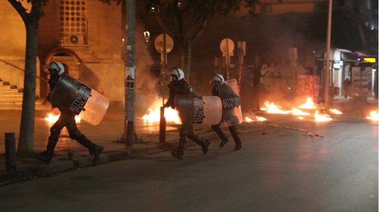 Περίπου στις 02:00 , κουκουλοφόροι επιτέθηκαν σε διμοιρία των ΜΑΤ έξω από το ΑΠΘ στο ύψος της ΔΕΘ, πετώντας πέτρες φωτοβολίδες και μολότοφ. Από την πλευρά τους, οι αστυνομικοί απάντησαν με χρήση χειροβομβίδων κρότου λάμψης και δακρυγόνων.