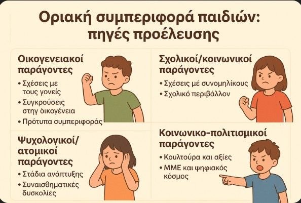 Η οριακή συμπεριφορά των παιδιών αναφέρεται σε συμπεριφορές που βρίσκονται “στα όρια” του αποδεκτού, συχνά προκλητικές, αντικοινωνικές ή αμφισβητητικές, χωρίς να αποτελούν πάντα παθολογικές εκδηλώσεις. Οι πηγές προέλευσης μπορεί να είναι ποικίλες και πολυπαραγοντικές: