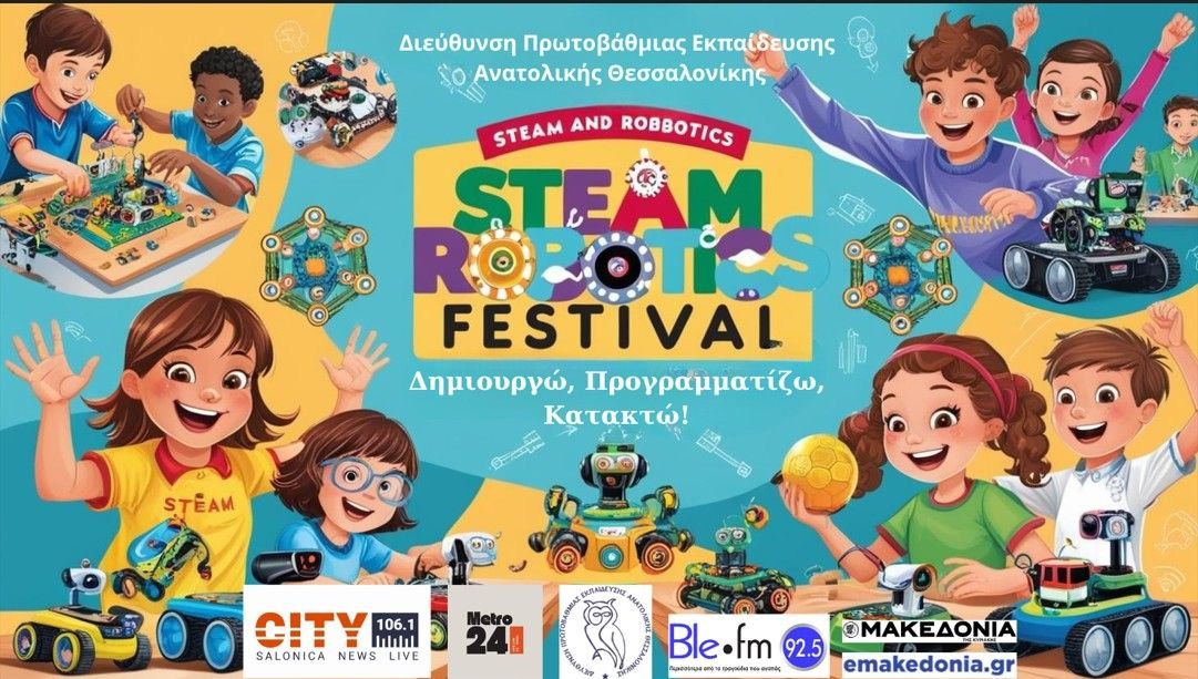 Το Σάββατο στις 14 Ιουνίου 2025 ξεκινά το 3°Φεστιβάλ-Εκδήλωση Εκπαιδευτικής Ρομποτικής και STEAM 2025 το οποίο θα πραγματοποιηθεί στις εγκαταστάσεις του NOESIS (6 χλμ Θεσσαλονίκης – Θέρμης), που διοργανώνει η Διεύθυνση Πρωτοβάθμιας Εκπαίδευσης Ανατολικής Θεσσαλονίκης σε συνεργασία με το Αριστοτέλειο Πανεπιστήμιο Θεσσαλονίκης (Εργαστήριο Ψυχολογίας και Εκπαίδευσης του Παιδιού – ΨΥΧΗ, Τ.Ε.Π.Α.Ε, Π.Τ.Δ.Ε, Τμήμα Φιλοσοφίας και Παιδαγωγικής, Τμήμα Ψυχολογίας, & Τ.Ε.Φ.Α.Α) και την...