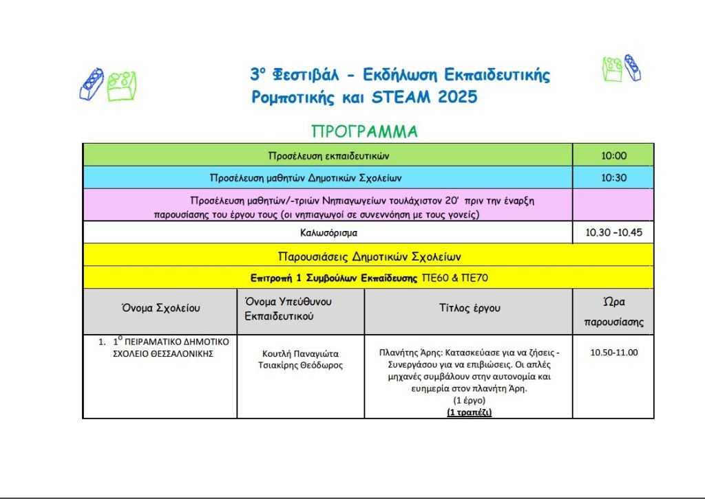 Διεύθυνση Πρωτοβάθμιας Εκπαίδευσης Ανατολικής Θεσσαλονίκης : 3°Φεστιβάλ-Εκδήλωση Εκπαιδευτικής Ρομποτικής και STEAM 2025