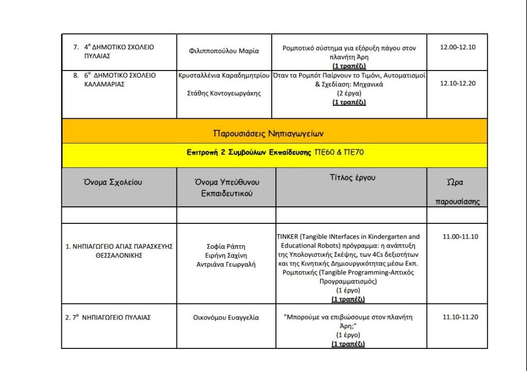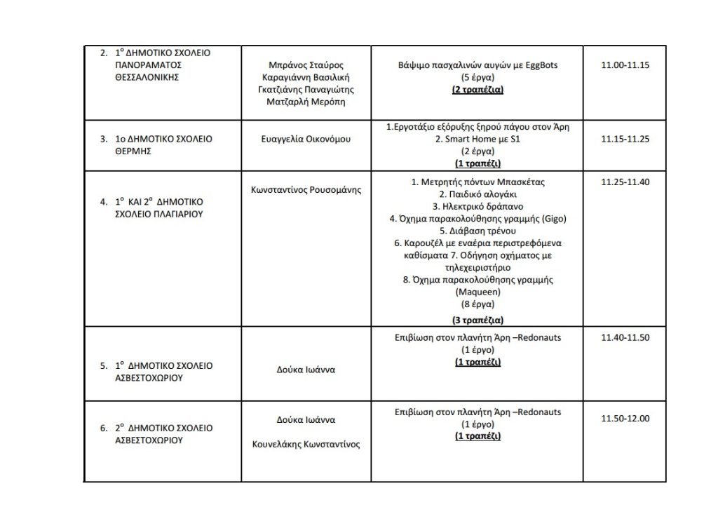 Οι τίτλοι των έργων STEAM και Ρομποτικής που θα παρουσιαστούν από 19 συμμετέχουσες σχολικές μονάδες είναι: