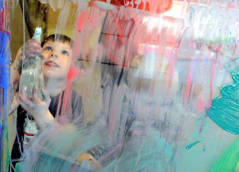 Θεωρητικά, είναι ήσυχη και δημιουργική δραστηριότητα. Πρακτικά, το σπίτι θυμίζει γκαλερί αφηρημένης τέχνης. Σε κάθε τοίχο. Και στον σκύλο.