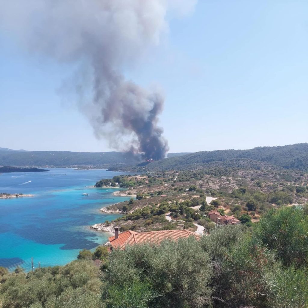 Μεγάλη φωτιά καίει πευκοδάσος στη Βουρβουρού Χαλκιδικής – Μήνυμα του 112 στους κατοίκους να απομακρυνθούν