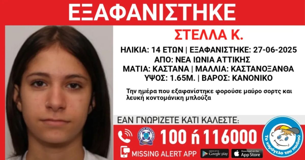 Συναγερμός για εξαφάνιση 14χρονης στη Νέα Ιωνία Αττικής