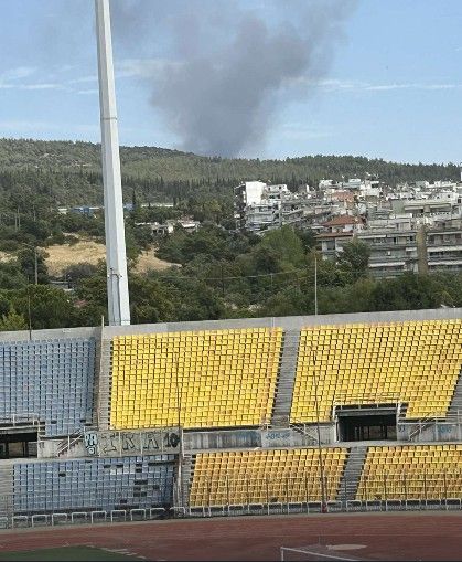 Στις ρίψεις νερού από αέρος συμμετέχουν 2 ελικόπτερα.