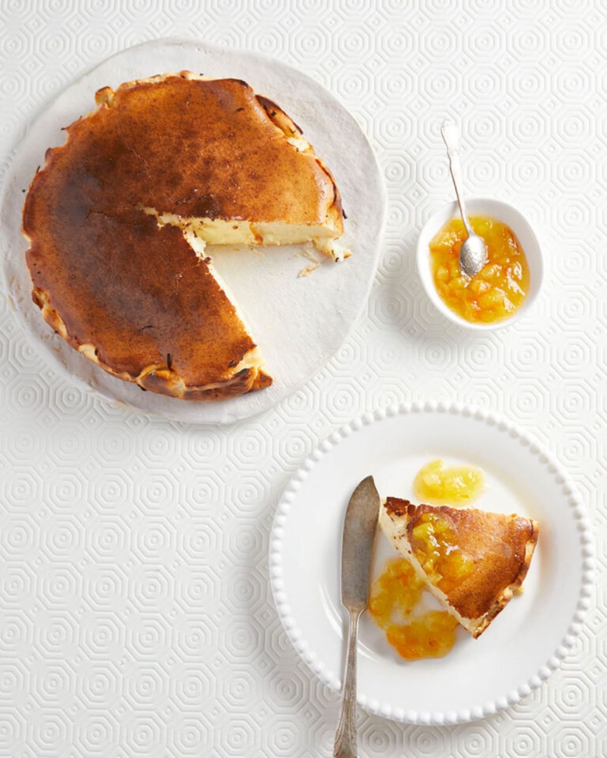 Η φλαν είναι μια ψητή κρέμα, κάτι σαν γαλατόπιτα. Η συγκεκριμένη δεν έχει αυγά και βούτυρο, παρ’ όλα αυτά η γεύση της είναι πλούσια και γαλατένια, με μια ελαφριά ξινούτσικη αίσθηση, όπως του τσίζκεϊκ.