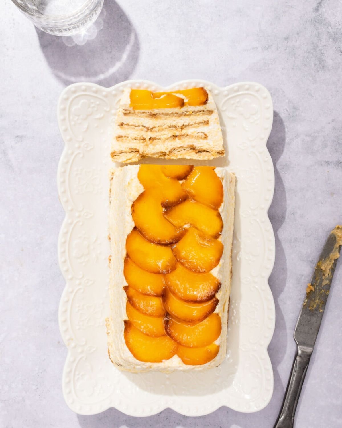 Καλοκαιρινή Συνταγή : Εύκολο γλυκό ψυγείου με μπισκότα και νεκταρίνια