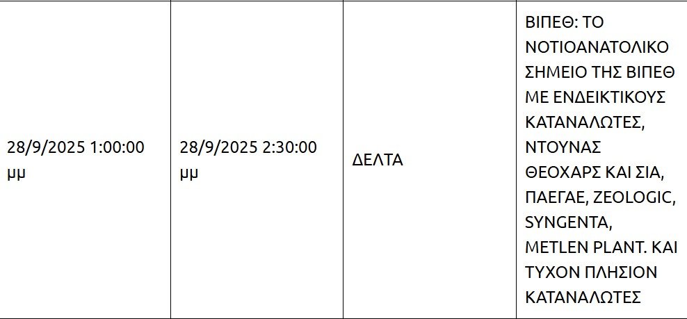 Διακοπές ρεύματος σήμερα σε περιοχές της Θεσσαλονίκης Σύμφωνα με ενημέρωση του ΔΕΔΔΗΕ, χωρίς ρεύμα θα μείνουν οι παρακάτω περιοχές:Sep 28, 2025 | Stella Patsia | ΘΕΣΣΑΛΟΝΙΚΗ, Χρηστικά Πίσω στην κεντρική