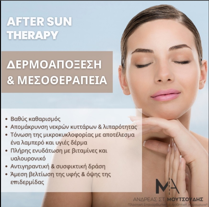 👉 Για να δώσουμε λάμψη και ενυδάτωση σε ένα δέρμα θαμπό από το καλοκαίρι προτείνουμε είτε μεσοθεραπεία prp, είτε Microneedling Dermapen για διέγερση κολλαγόνου και ελαστίνης, είτε κάποιο χημικό peeling για απολέπιση και φωτεινότητα.