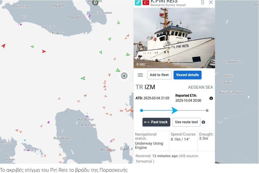 Χωρίς να χάσει καθόλου χρόνο το τουρκικό ερευνητικό Piri Reis απέπλευσε από το λιμάνι της Σμύρνης (το βράδυ της Παρασκευής 04/10) λίγες ώρες πριν τεθεί σε ισχύ η NAVTEX.