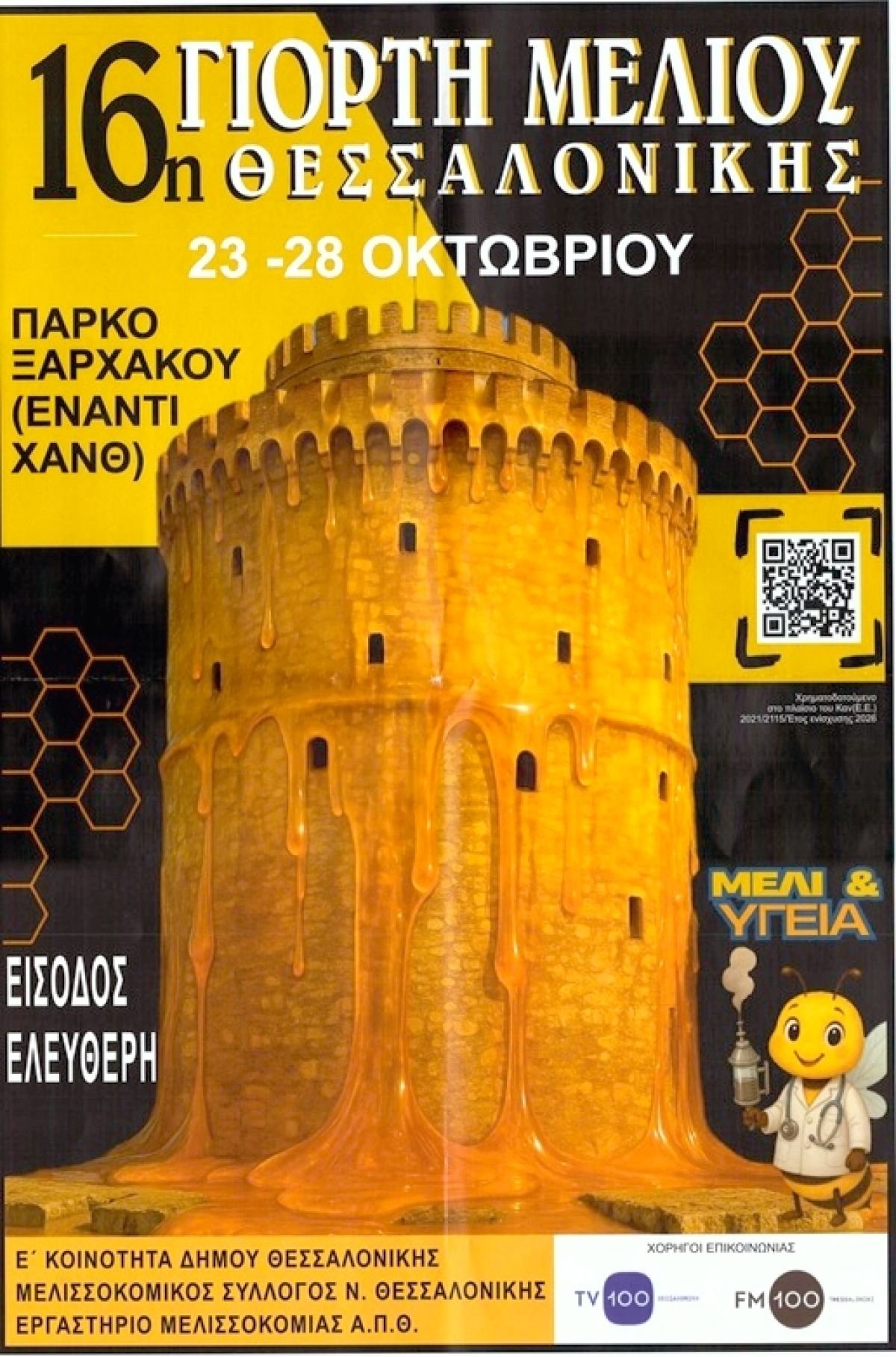 Ο Δήμος Θεσσαλονίκης και η Ε΄ Δημοτική Κοινότητα, σε συνεργασία με τον Μελισσοκομικό Σύλλογο Νομού Θεσσαλονίκης και με το Αριστοτέλειο Πανεπιστήμιο Θεσσαλονίκης (Εργαστήριο Μελισσοκομίας), διοργανώνουν τη «Γιορτή Μελιού 2025».