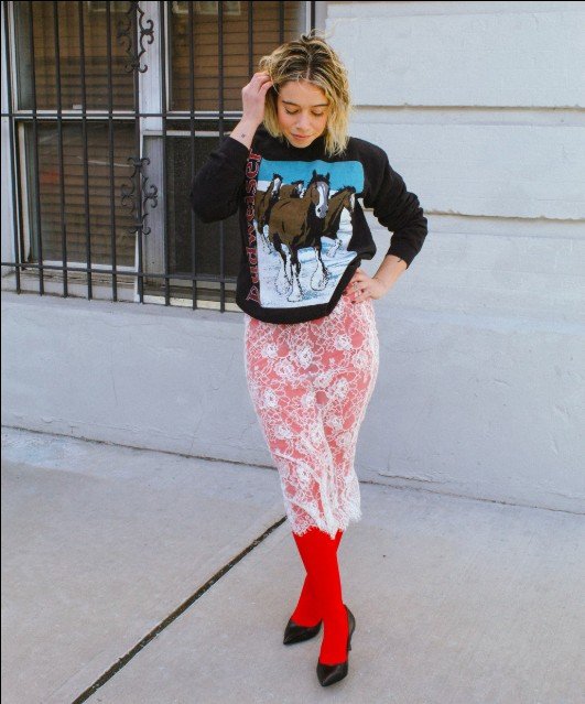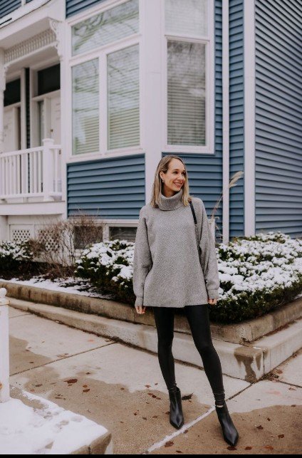 - Patterned καλσόν + oversized πουλόβερ = cozy & chic