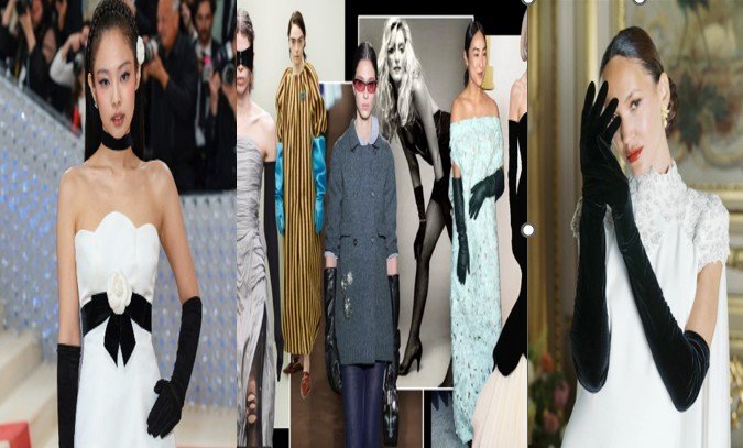 Τα μακριά γάντια πάνω από τον αγκώνα κάνουν δυναμικό comeback, επαναφέροντας μια αίσθηση παλιάς χολιγουντιανής λάμψης. Συνδυάζονται με βελούδινα φορέματα, σατέν bustiers ή ακόμα και με ανδρόγυνα σακάκια, δημιουργώντας έναν αντιφατικό αλλά υπέρκομψο συνδυασμό. Οίκοι όπως Valentino και Schiaparelli τα ανέδειξαν ως το απόλυτο runway statement.