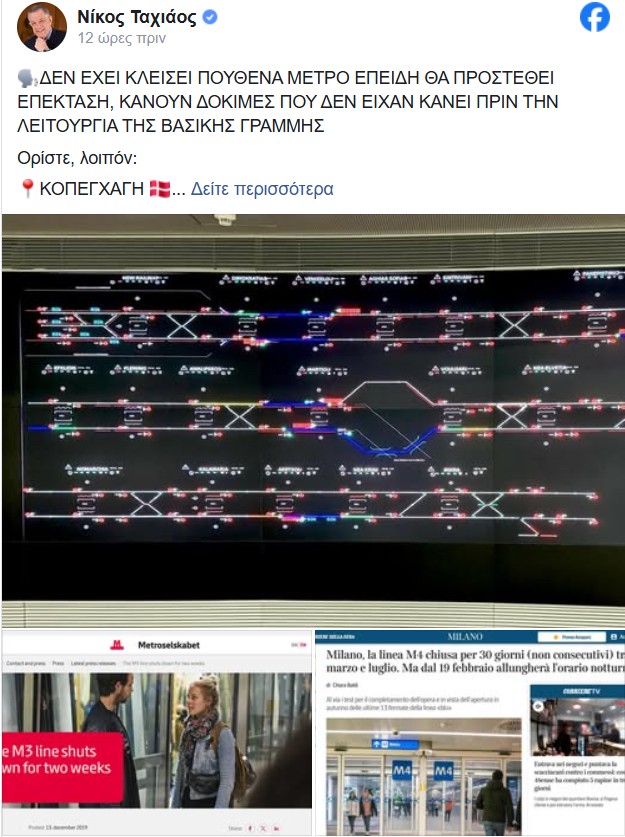«Δεν έχει κλείσει πουθενά μετρό επειδή θα προστεθεί επέκταση, κάνουν δοκιμές που δεν είχαν κάνει πριν τη λειτουργία της βασικής γραμμής Ορίστε, λοιπόν»: γράφει και προσθέτει: