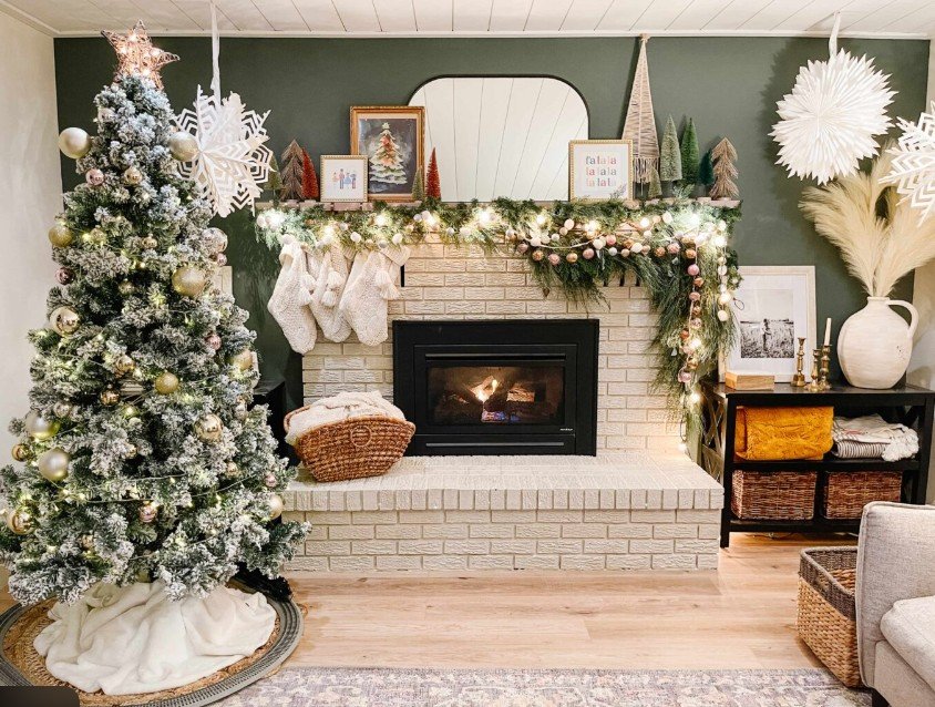 Αν έχεις τζάκι, κάντο το κεντρικό σημείο της χριστουγεννιάτικης διακόσμησης του σαλονιού σου. Η διακόσμηση του τζακιού με διάφορα μικροαντικείμενα είναι η τελευταία τάση στην εσωτερική διακόσμηση. Αν το τζάκι σου είναι ψηλό, κρέμασε γιρλάντες σε διάφορα ύψη και πρόσθεσε μικρά στολίδια. Σε περίπτωση που το τζάκι σου έχει βάθος τοποθέτησε πάνω σ’ αυτό μία γιρλάντα και βάλε φωτάκια, στολίδια, κεριά ή ό,τι άλλο σου αρέσει και παίξε με τα χρώματα και τις υφές.