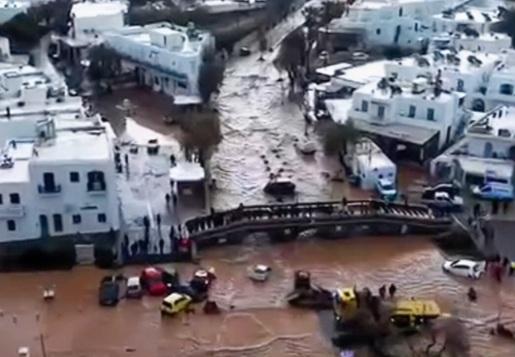 Τεράστια προβλήματα προκάλεσε κατά το πέρασμά της η κακοκαιρία που έπληξε την χώρα, στις Κυκλάδες, με την Μύκονο και την Πάρο να «βουλιάζουν» από το νερό.