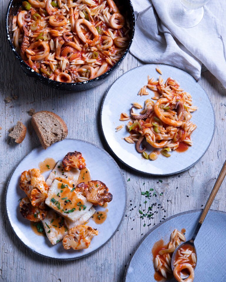 Νηστίσιμη συνταγή : Καλαμαράκια κοκκινιστά με κριθαράκι στην κατσαρόλα