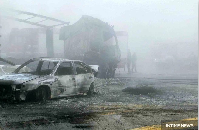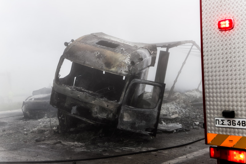 Στη συνέχεια το φορτηγό προσέκρουσε με σφοδρότητα στα προστατευτικά κιγκλιδώματα και έπειτα στο box των διοδίων. Στο σημείο έπιασε αμέσως φωτιά με αποτέλεσμα να καούν και τα τρία οχήματα που ενεπλάκησαν στο δυστύχημα.