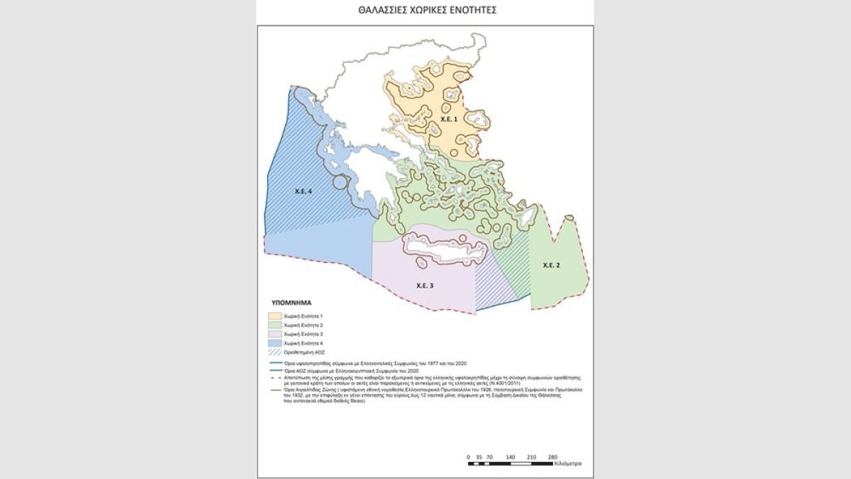 Επίσης, υπογραμμίζεται ότι “η Ελληνική Δημοκρατία επιφυλάσσεται για την άσκηση, και ως προς τις λοιπές ακτές της, των αντίστοιχων δικαιωμάτων της, όπως αυτά απορρέουν από τη Σύμβαση των Ηνωμένων Εθνών για το Δίκαιο της Θάλασσας της 10ης Δεκεμβρίου 1982”.