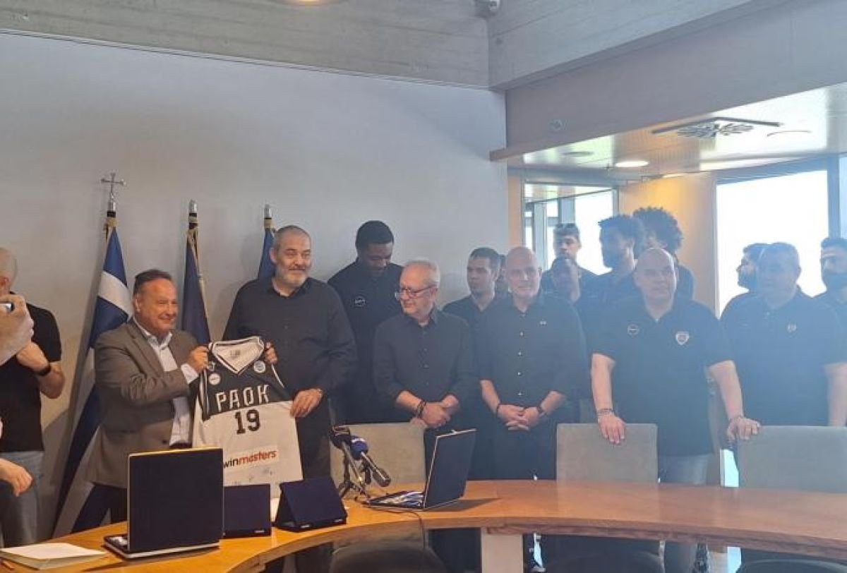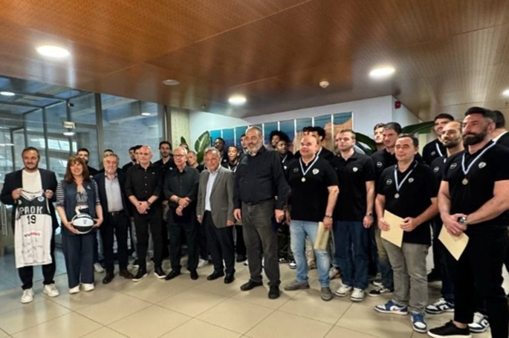 Βραβεύτηκε η ομάδα μπάσκετ του ΠΑΟΚ από τον Στέλιο Αγγελούδη