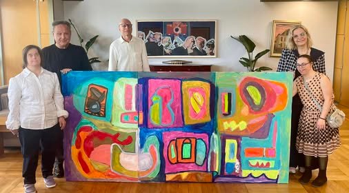Το έργο αυτό μας έφερε σήμερα, συνοδεία του πατέρα της Richard Lucas, στο γραφείο μου, έργο το οποίο, όπως της υποσχέθηκα, θα κοσμεί από σήμερα το Δημαρχείο Θεσσαλονίκης, στέλνοντας ένα ηχηρό μήνυμα σεβασμού, συμπερίληψης και αγάπης για τη διαφορετικότητα.