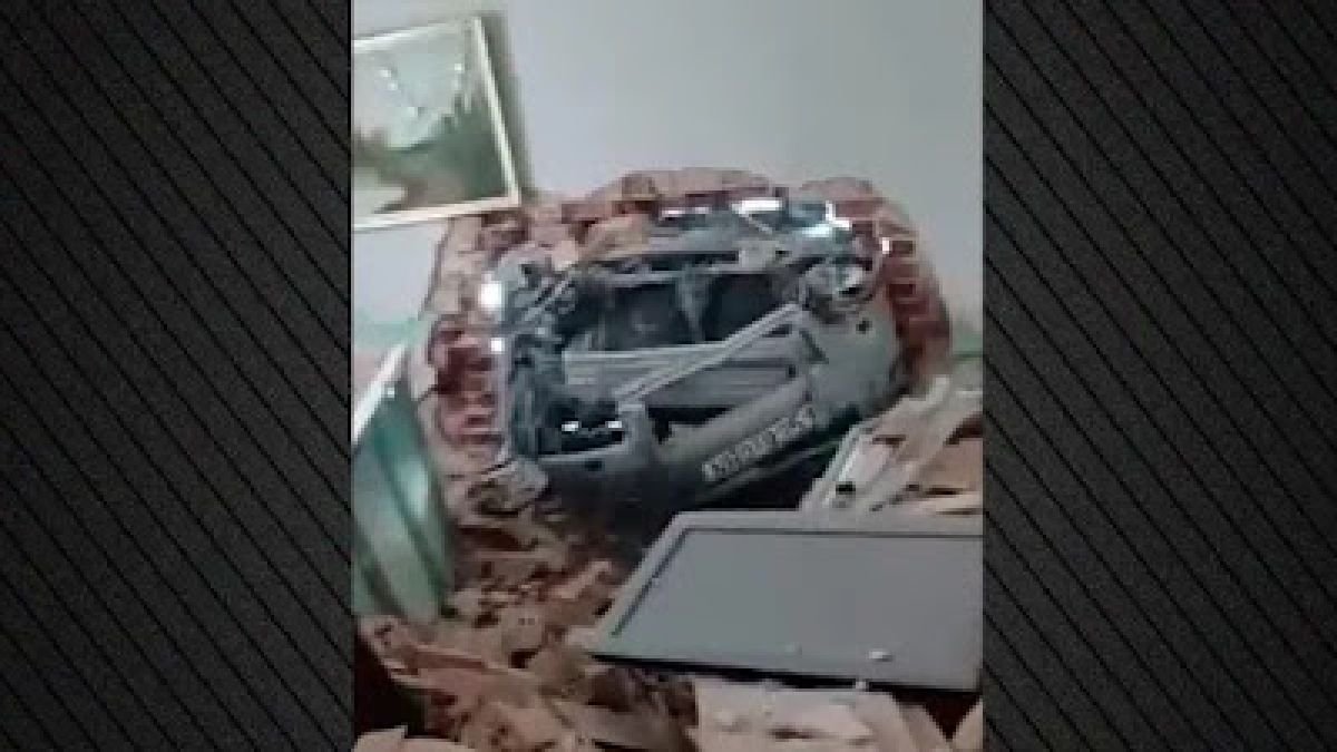 Όπως φαίνεται στο βίντεο που ακολουθεί, το αυτοκίνητο τρύπησε έναν τοίχο.